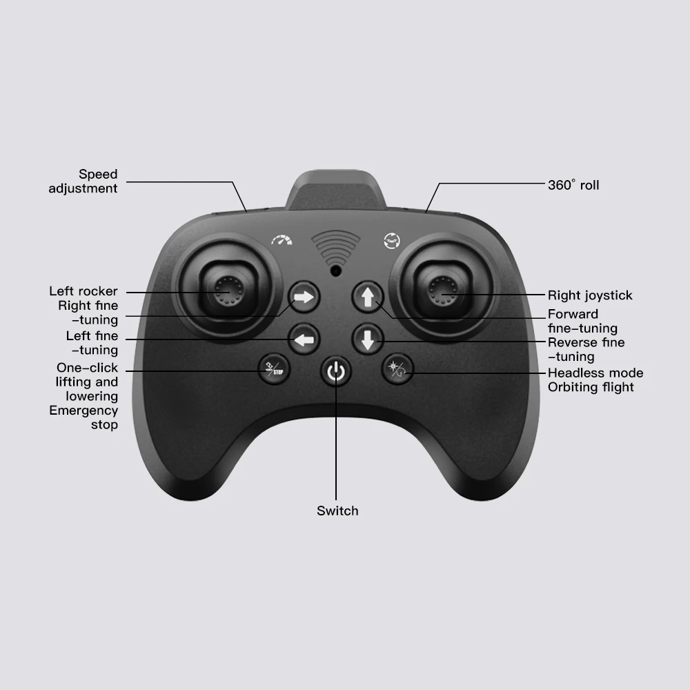 • Lightweight (51g), beginner-friendly, 70m remote distance, 5–10 min flight time, 3 speed modes, hover & one-key takeoff/landing.